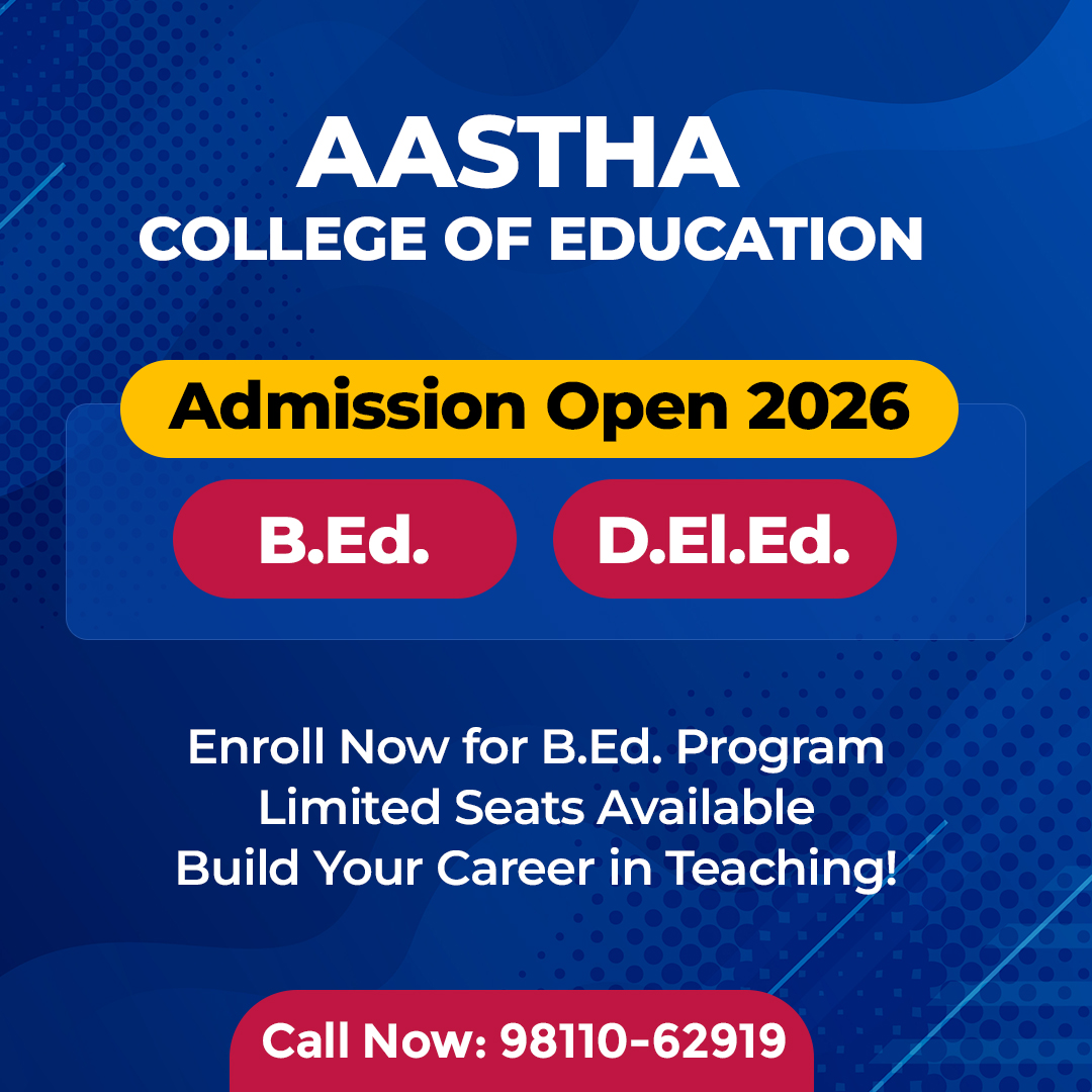 Aastha College of Education is one of the most prestigious College in Haryana. It is a private institution run by the Aastha Educational Charitable Trust. Aastha College is affiliated to the National Council of Teacher Education (NCTE), which is the largest educational board in the country and is duly recognised by the Department of Education, Life at Aastha College is committed to achieve academic excellence, intellectual growth, arts, athletics, high standards of ethical awareness, sportsmanship, and community service.